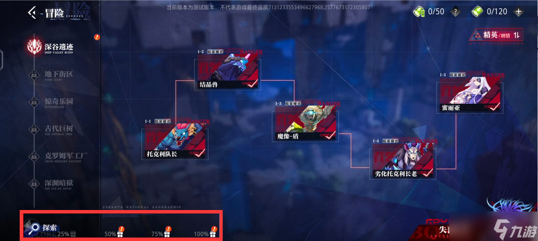 当然,每张地图都有探索度显示,完成25%/50%/75%/100%时均可获得一定奖励。