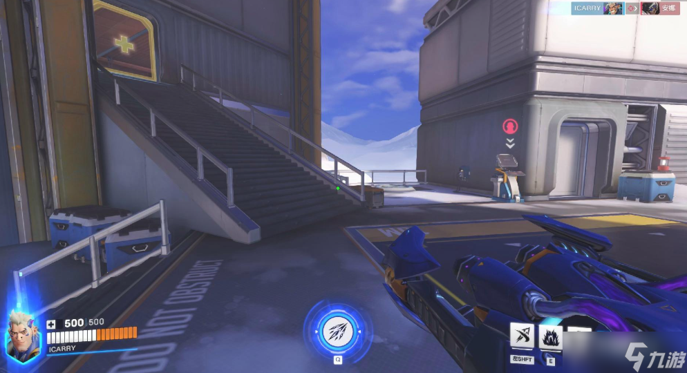 或者用来当作自身和队友的临时屏障阻挡规避一部分的伤害,使用该技能过程中没有弹道下坠,发射时尖刺墙可能会被矩阵吃掉或者被源氏反弹。尖刺墙能生成在垂直的面上,跟队友的一些技能配合可以强制位移敌人。骇灾shift技能是向前跃出一段距离,处于空中时再次按下shift能释放一段劈砍,并将敌人强制向后位移,使用该技能时间按住S键能实现温斯顿小跳的效果,如果在位移时按住空格键能额外跳出一段距离。