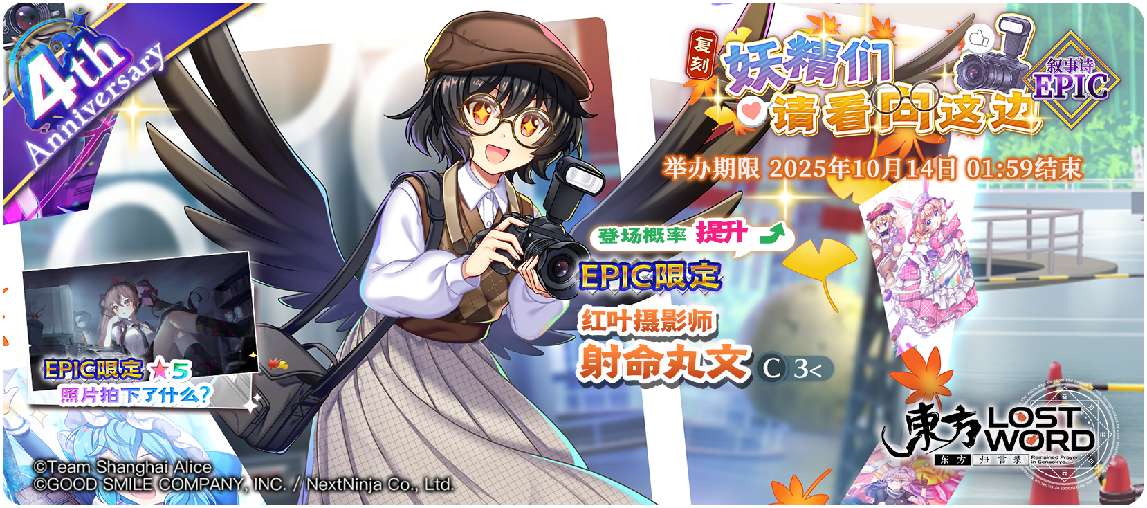 [红叶摄影师]射命丸文登场概率提升的EPIC限定祈愿!