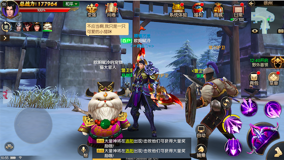 战斗再爽,也会有疲惫的时候,在《拿下三国》中还有众多特色玩法可以放松身心。MMO游戏永远少不了的便是社交功能,帮派永远是身后最坚实的靠山!加入帮派之后,除了帮派城战这类PVE玩法外,玩家还能在帮派烤火、帮派拍卖等休闲玩法中享受社交的乐趣。其次,时装、翅膀、宠物等休闲玩法也可满足各玩家追求个性的时尚需求;赛马、押镖、藏宝图等趣味玩法也充满了新奇感。此外,《拿下三国》还拥有武将系统,玩家可以召唤各式各样的武将前来助阵,赵云、吕布等三国猛将、小乔、孙尚香等三国美女均在此列。