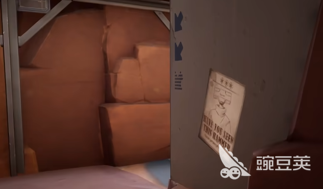 继续往里面走能看到叉车后面的海报,座椅位置上有一个超大号的车车玩偶,继续向着前方前进,能看到一堆车车玩偶在围着一个晶体,回头能看到一张海报,回到复活点的二楼在地面和角落的箱子中也有着同样的海报。