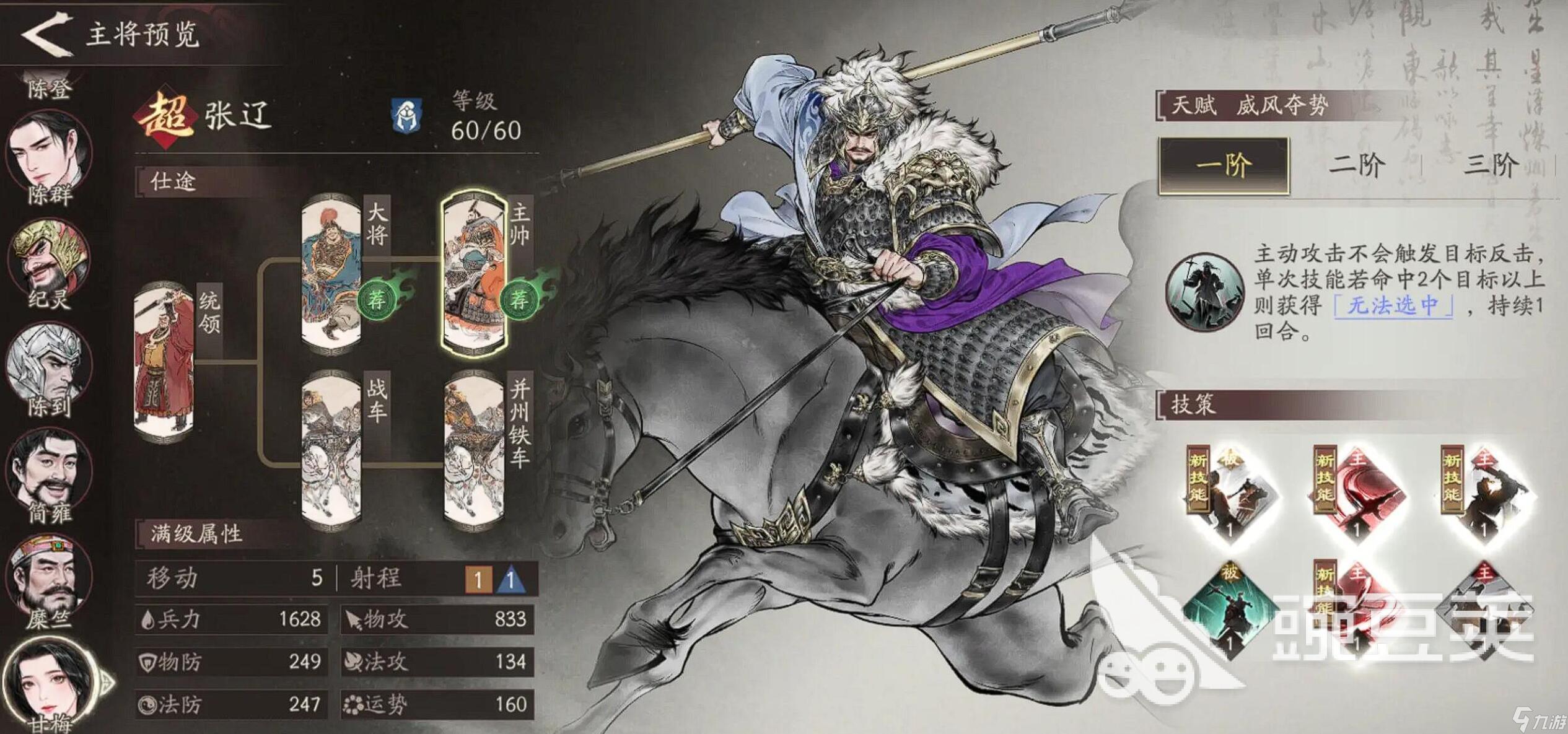 张辽在三国望神州里是骑兵,主打技能爆发和机动性,开荒期特别好用,转职后还能给队友加buff,骑兵阵容核心首选。但是对于新手来说培养可能是个门槛,那么为大家分享一下三国望神州张辽技能加点玩法,虽然说张辽前期比较给力,但是如果加点不对打不动还浪费资源。其实加点顺序不能乱,尤其升阶到二阶后他会质变,能多打几次输出,直接影响整个队伍战力。