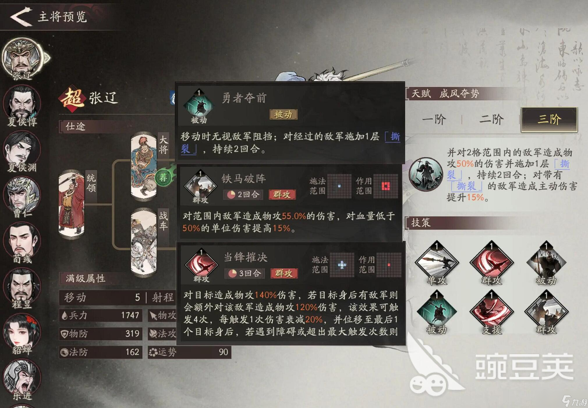 张辽加点简单说来就是当锋摧决必满,铁马破阵次点,天赋其实按照升阶走就可以了,PVE用爆发流,PVP选控制流。二阶是质变点,资源不够先升二阶。别心疼重置券,加点不对赶紧改。骑兵阵容里张辽稳坐核心,记住这些技巧,推图打竞技都好用。