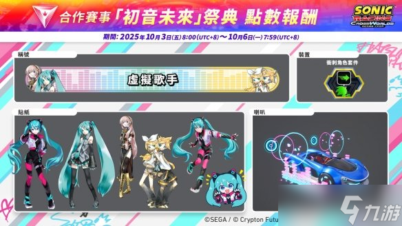 世嘉(SEGA)旗下好评发售中的《索尼克赛车 交叉世界》,近日正式推出合作赛事——“初音未来”祭典。玩家于赛事期间收集祭典点数,即可获得绝无仅有的特别游戏道具。
