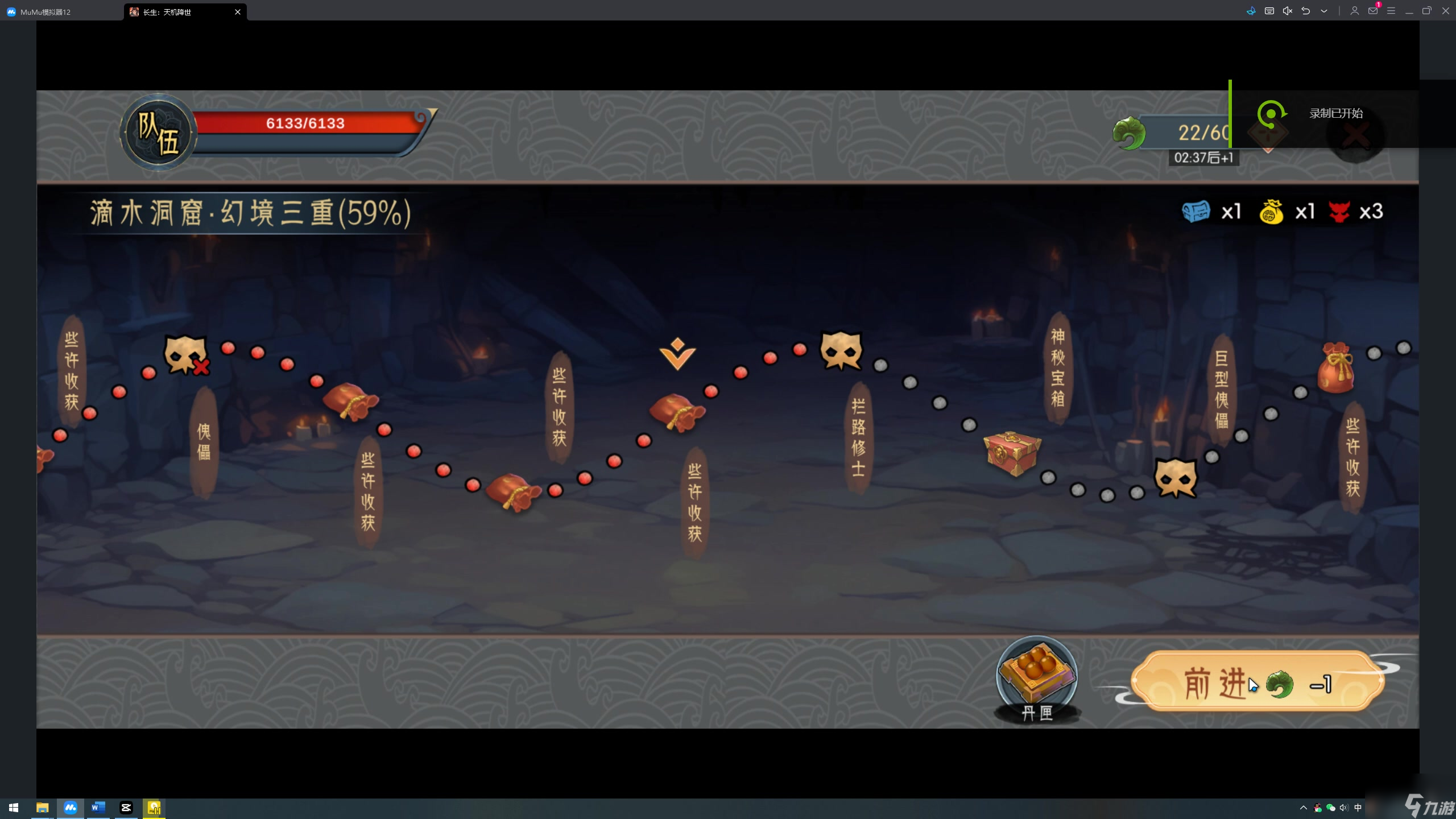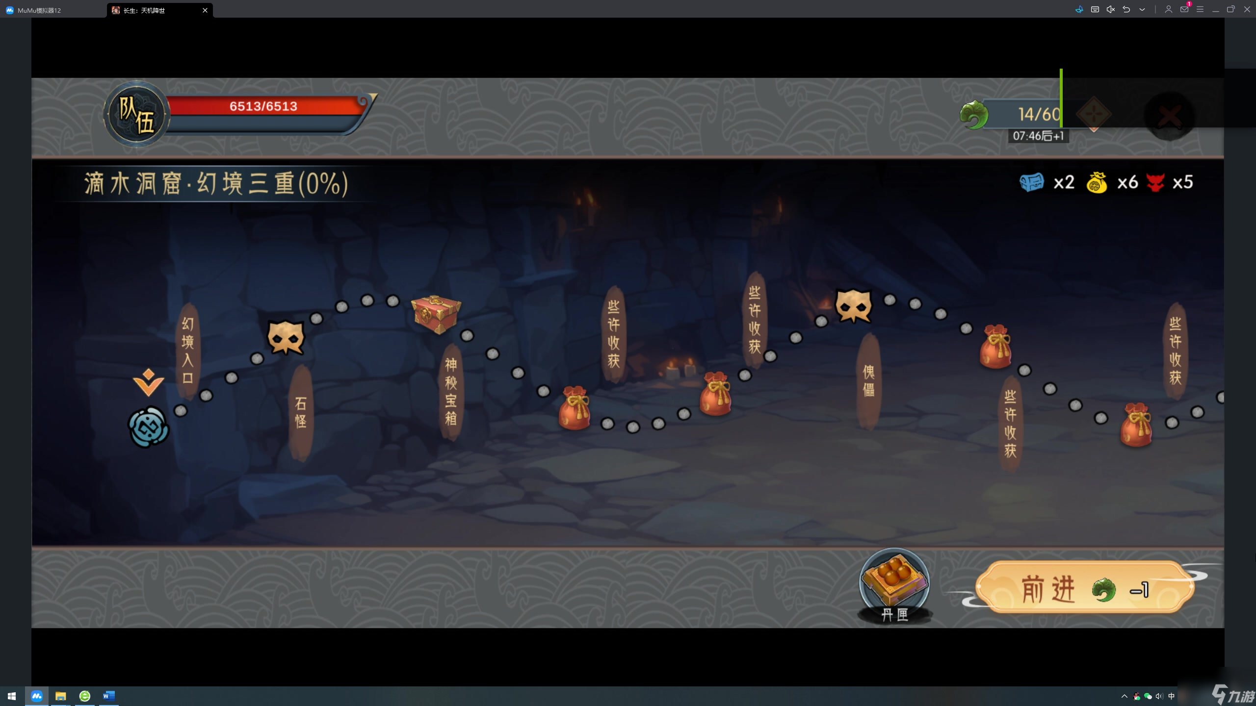通关阵容(10级):吕风(法力装)、楚青青(法力装,聚灵镯)、鸠真真(血装)、宫莲华(攻击装)