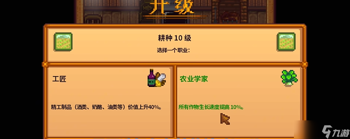 游戏提供了耕种、采矿、钓鱼、采集和战斗五大技能方向,每种技能在5级和10级时会解锁不同的职业分支。比如耕种分支可以选择农艺师或畜牧人,采矿分支可以选择矿工或宝石工匠。耕种是前期最稳定的赚钱方式,适合想快速积累资金的玩家。选择农艺师能提高作物价值,畜牧人则提升动物产品价格。