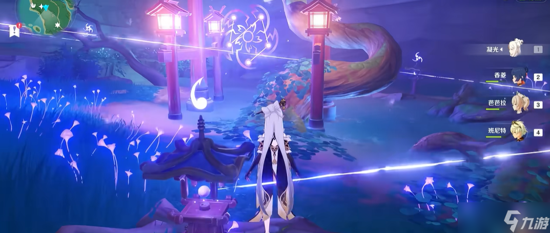 首先咱们要找到枯井的位置,它在绀田村村长家后面,周围环境比较隐蔽,记得开元素视野找找线索。进入井底前,记得带上雷种子,因为里面有不少雷屏障挡路。井底最关键的机关是一个五盏雷灯的阵法,解谜的核心是调整灯柱的亮灯顺序,让它和鸟居上的图案对应。正对门的灯柱是起点(标记为1号),其他灯柱按逆时针方向编号,调整顺序为1-2-3-5-4就能解开。