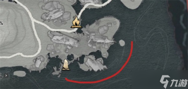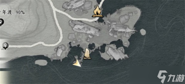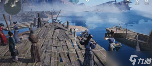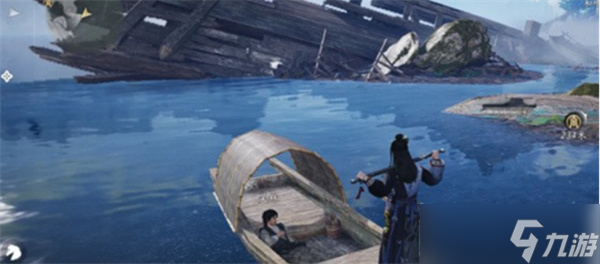 1、在【千年渡界碑】东侧海边,找到一艘行驶的小船,与NPC【吴林】对话。
