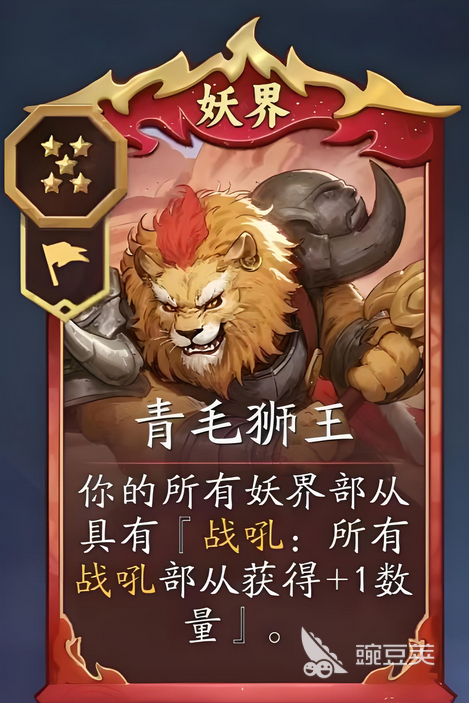 排在第二的是黄风怪,效果是刷新天书,使其中的不同全部属于妖界势力。这张卡毋庸置疑是属于妖族的绝对抓取卡,即使是玩别的阵容,只需要一个黄蜂怪,也可以在1回合之内直接转型为妖族。在实战中拥有很强的控制表现能力,可以打乱敌方阵型,拥有多重连环控制能力,减少对面输出,是和狼妖同等地位的一张卡,妖族阵容看到之后一定要去抓到。排在第三的是青毛狮王,使所有妖界部从具有战吼,号称是妖族的万金油卡牌,成型之前看到之后必抓,能够快速稳血拉战力,且适配于任何阵容。缺点是实战能力不足,当然这是妖族通病,并不是这张卡的问题。