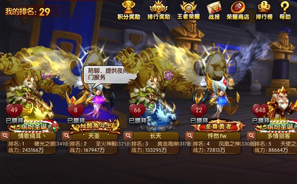跨服竞技场方面,前期的玩法就是荣耀争霸赛,突然看到好多巨巨,由于这个玩法是自动战斗的,自己唯一能做的,就是要多看战报,多多看前面巨巨们的阵容,根据经验,调整自己的阵容,尽可能大的提升克制关系,避免被比自己低的弟弟教做人。