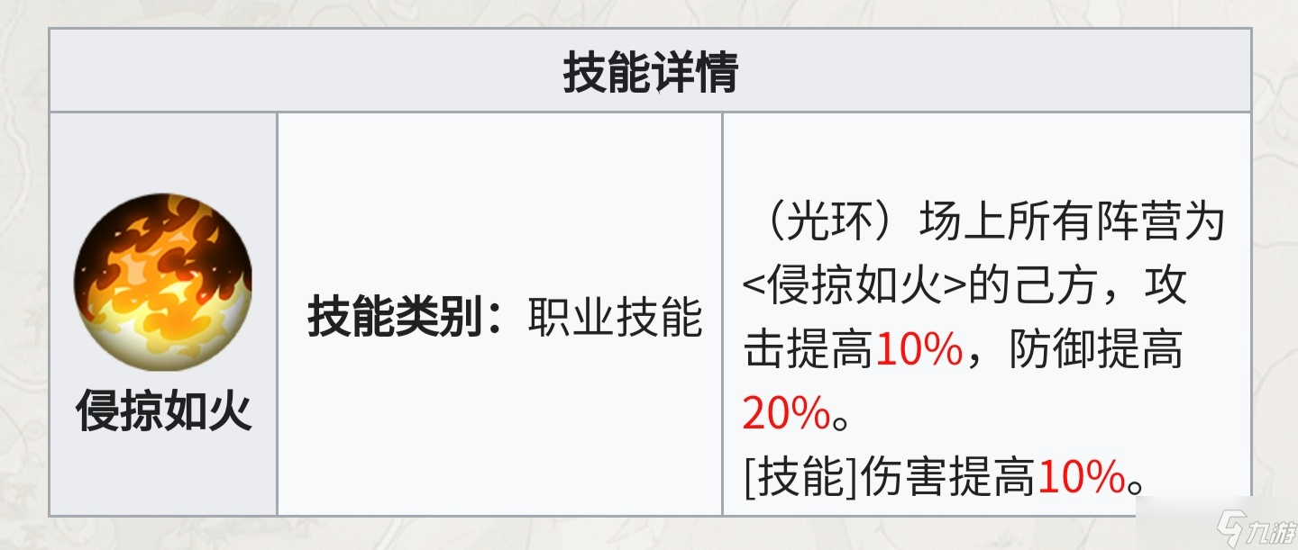 扬旗光环提供3格范围内其他友军12%攻防加成(歌洛本人不享受),插旗后只要旗帜在场对全图队友提供15%攻防加成。两个buff队友只享受更高的那一个,歌洛本人只享受插旗。除此之外,加成与任何光环或收益叠加。另外骑士同盟大光环为阵营内角色额外提供主动攻击前12%伤害和被反击时伤害降低24%,可与任何光环叠加,这个光环因为阵营人物较少,主动攻击12%伤害的收益也一般。
