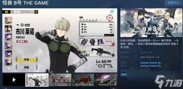根据《怪兽8号》在steam商店页面信息可知,游戏已于2025年10月1日上线,这是一款改编自同名热门动漫的弑巨战斗型RPG。玩法是回合制指令战斗,玩家需要组建四人小队,通过破防怪兽、攻击其核心来赢得胜利 。
