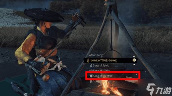 通过学习演奏《野狼之歌》,可召唤这位伙伴。用三味线弹奏此曲,就能召唤狼来到身边,使其在一段时间内陪你一同战斗。(阿通可演奏的曲目还包括:《阿通的歌》《安康之歌》《精神之歌》《虚荣之歌》)
