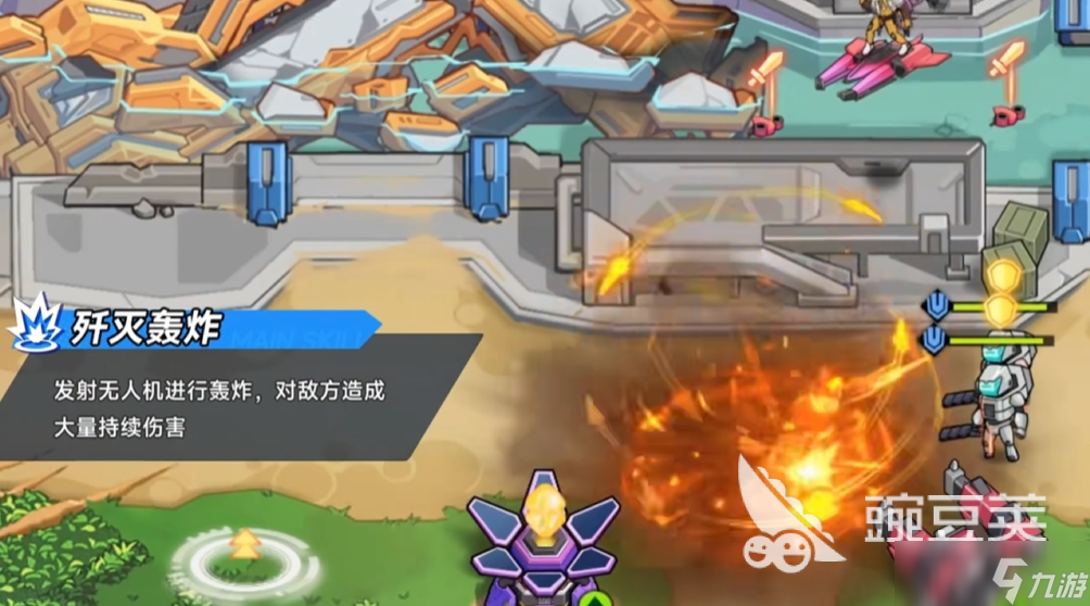 伊莉丝在战斗中的定位是输出,并且她具有极强的机动性。在有些观察中,并不是所有的怪物都从地面上来袭,有很多都是会从空中飞过来的,而此时伊莉丝的技能就能够帮助你轻松面对这样的情况。她的招牌技能歼灭轰炸,可以召唤出无人机对指定的位置进行轰炸,并且伤害极高。如果说你遇到了空袭,那么此时伊莉丝就能够发动该技能,帮助你快速地消灭从天上来犯的敌人,保卫防御塔尽量少掉血。