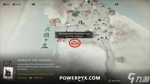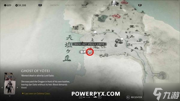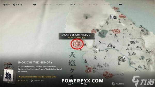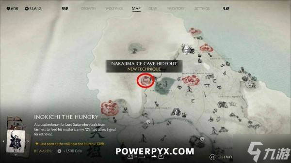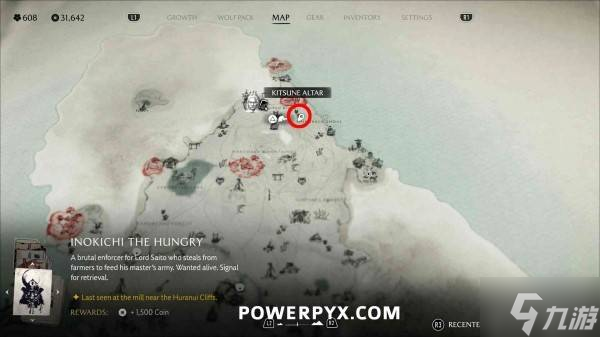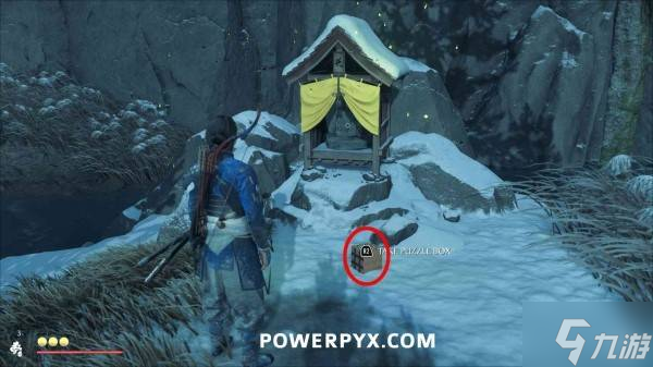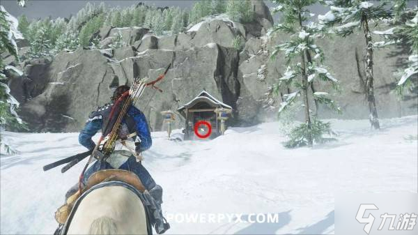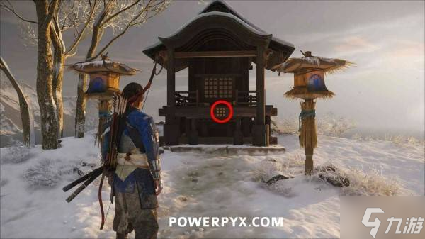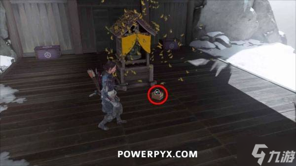 位于敌人营地的静思祭坛前方,此处为隐藏营地,需要先齐纳王天盐山脊西北部的雪祸神社(地图上有标记)。到达神社后先清掉周围的敌人,然后解救俘虏,接下来需要解开神社谜题才能开启通往隐藏营地的道路:在左侧区域拿起火把,点燃上方悬挂着点亮灯笼的两个烛台。在右侧区域调整狐狸雕像的方向,使其与墙上雕刻的石狐朝向完全一致。