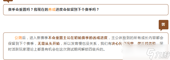 每一个赛季不会重置。这主要是和赛季的核心规则有关。在公开测试结束之后,就会进入到赛季制的运营阶段,每一个赛季全部都会有明确的周期规划,其中就会包括养成进度的继承。初七赛季在结束之后将进入到一个新的赛季,所有角色的武将等级,还有技能解锁,还有主城建筑的等级全部都不会清零,这就意味着可以直接延续到下一个赛季,大家也并不需要担心自己辛苦积攒的资源全部的浪费掉,哪怕一开始发育比较慢也没什么关系。