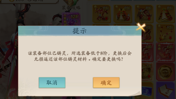 已铸灵的装备无法卸下,更换低于8阶的装备将无损返还之前铸灵消耗的灵晶
