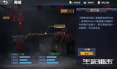 与常见的卓越级的XM1014战狼、AA12地狱龙相比,毁灭者在威力、穿透以及精准等重要属性上优势明显,将近战王者的霰弹枪本色展现的淋漓尽致。而拥有这样的一款高爆发的近距离输出武器,相信也必然会让你在PVP竞技对抗中更加的如鱼得水。