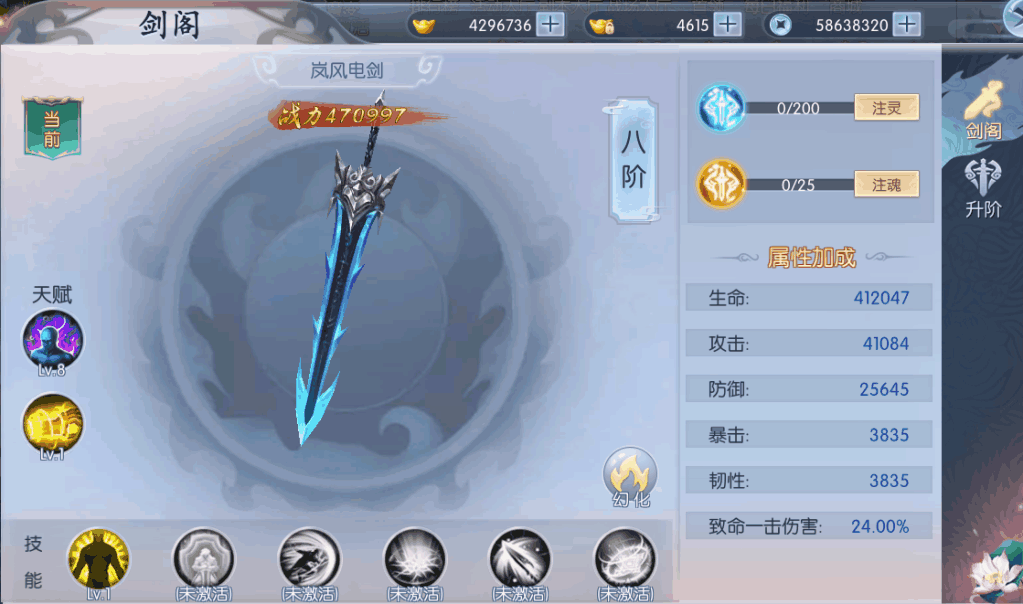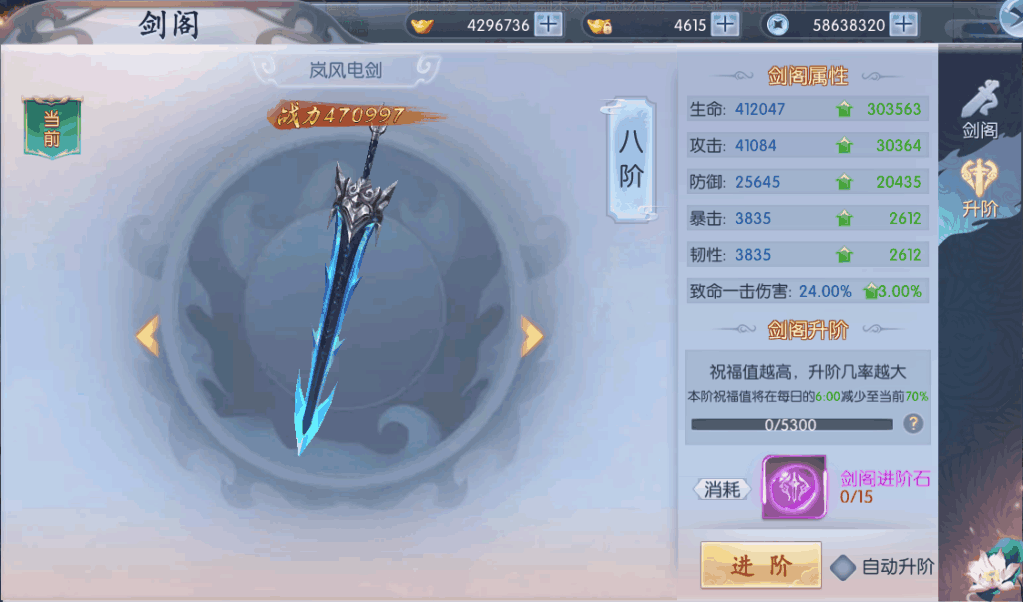 剑阁形象是可以消耗剑阁进阶石进行升阶的,每一阶都有不同的形象,共拥有8个剑阁技能,剑阁技能通过技能书进行激活,另外,通过圣进阶还可以给人物带来大量的属性加成,极大地增强自身的实力,可谓是颜值与实力并存!