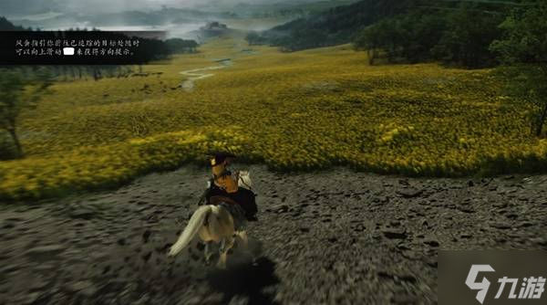 来到平原,骑马前进,将触摸屏上划可以触发任务跟随,跟着风的指引前行。