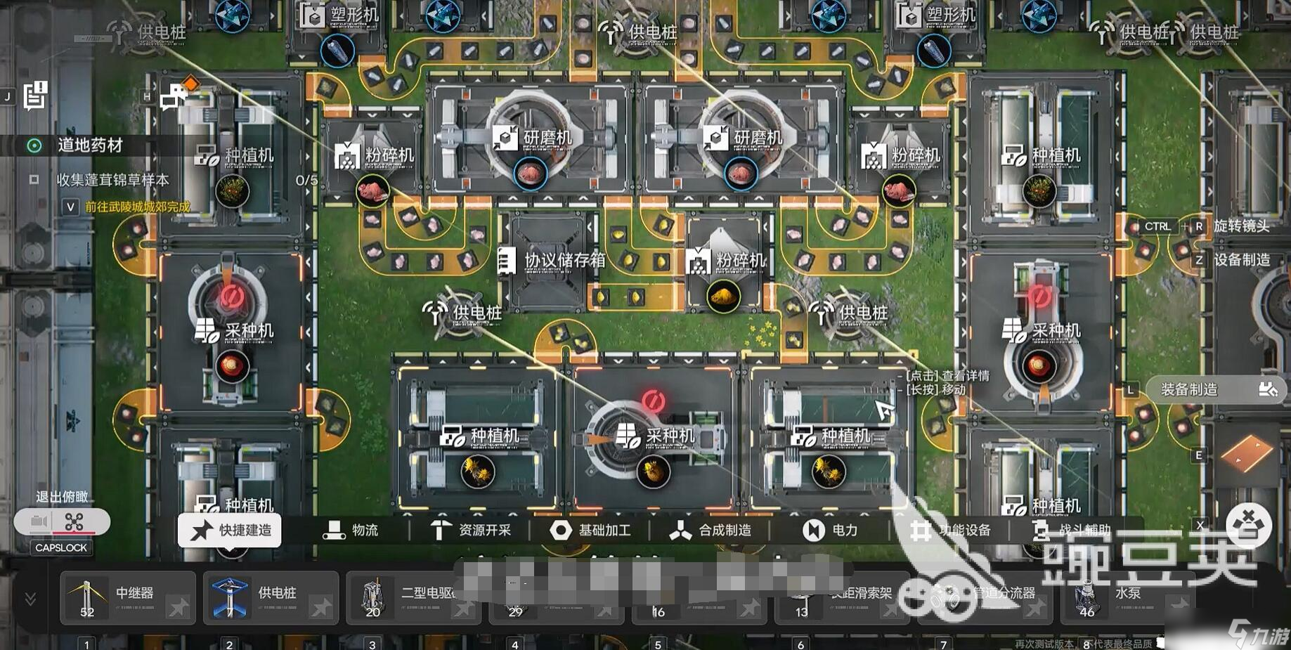 除了布置之外呢就是电力了。电力也是大家打造流水线的一个关键机制,协议核心电压较高,需用供电桩分流,中继器可扩展电力范围至150码外。初期建造2座地热发电机即可满足需求,地热发电机没有什么特殊的,唯一就是要远离腐蚀区,否则每小时损耗2%耐久。中期解锁电驱模块后,矿机效率提升非常高,但电力消耗翻倍。建议优先升级电力系统,这样的话大家中期就不会被电力卡主,回头还要重新布线非常麻烦。