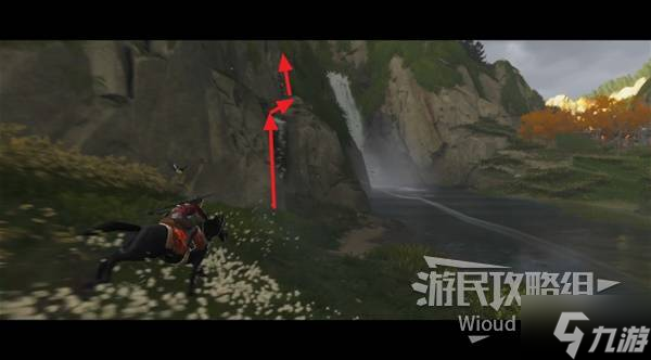目的地可以看到一个瀑布,爬瀑布左边的白色印记往上走。