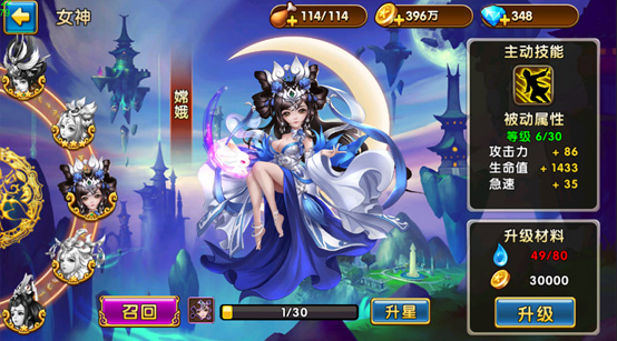 自古英雄难过美人关,若美人能辅佐相伴助力一统天下更是再好不过的事情。《貂蝉》的女神系统集结了千年来中国历史上经典的几位女神代表——嫦娥、洛神、娥皇、玄女、女娲。所有的女神均可以加成武将的被动属性,女神等级越高,武将的加成属性越多。除加成技能外,女神还可以在团战的时候增加上阵将领的增益buff,提高全队的主动技能,在击打boss的时候,大大提高了团队的通关几率。