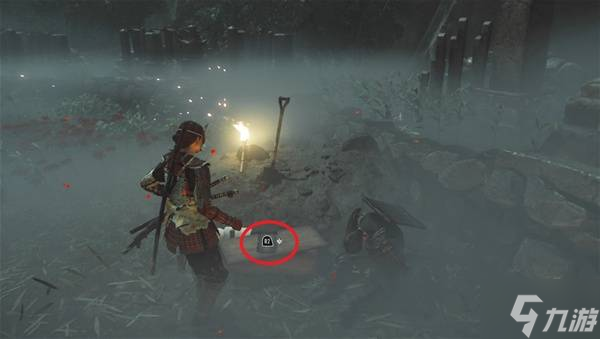 看到第二波盗墓贼时靠近触发剧情,彼岸花大将会把他们直接带走,我们只需要走到下图所示位置和信互动获得【刻印钥匙二】。