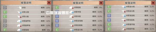 2.中期增援:中期增援建议玩家抽两次五连就可以。本人两次五连抽了一辆中坦(算运气好的),抽的多了太浪费资源了。运气好的就不多说了,运气不好的基本就是轻坦和装甲车这类的了,没关系~擦干眼泪继续刚图吧,建议现在将两个轻坦等级点到10J,步兵两个点到10J,四门10J大炮,装甲车一个10J。艰苦的推到可以出高级增援是最好不过的了。这时候玩家的整体资源是比较丰富的,如果中期有抽到高阶的飞机大炮的同学们,不要犹豫果断点满了。