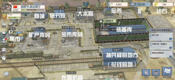 1.初级增援到中级增援(开始至克拉利恩-3):个人建议刚开始就用系统给我们的武器去推图,不建议把金币都点了士兵的等级,因为浪费的金币很多对后面抽到更高级的武器升级就慢了很多,钢铁的使用更多的要用在提升建筑的等级上面,其中大本营的等级的提升式最浪费钢铁的,前期钢铁基本是很缺的。在对战的时候如果打不过对手可以马上点撤退退出任务就不用浪费大把的钢铁去修理战损的坦克飞机了。从开始至克拉利恩-3的图基本上有步兵、装甲车、火炮、轻坦就可以完美的度过了,建议前期的点一个步兵在6J,一辆轻坦在8J,三门大炮在6J,一辆装甲车在6J就可以了其他的兵种1J就可以了,剩下的资源一定要坚持到能抽中级增援。