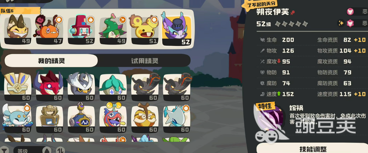 阵容方面可以搭配梦想三三、化蝶、立方人、魔眷鸟、朔夜伊芙来组成地属萌队,这里主要战力是萌系的精灵,而遁地鼠的作用就是秒杀机械系以及针对所有的印记队。