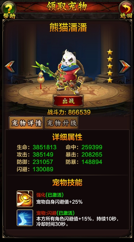 潘潘灵巧的武术技巧能够为角色提供额外的闪避值。可以有效的保护玩家的脆皮职业(法师和游侠)。