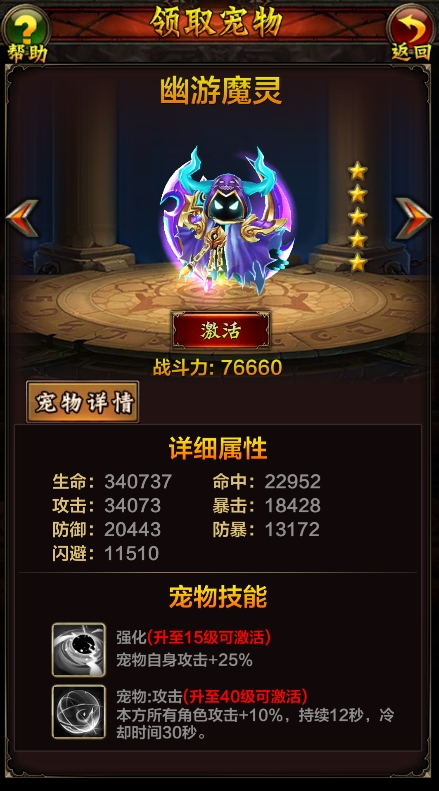 魔灵能为玩家提供战力加成。本身的初始属性和成长系数较高。后期可是玩家的强力打手哦~