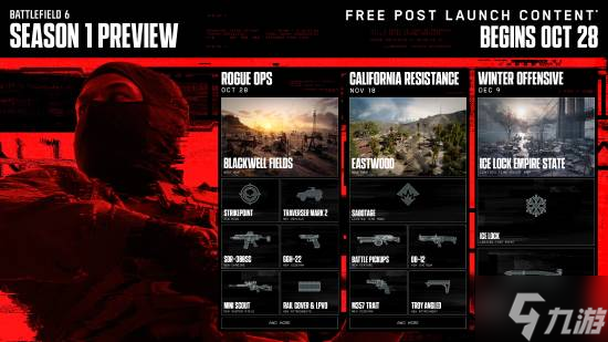 据Gamingbolt报道,DICE近日公布了部分《战地6》第一赛季的内容,该赛季将于10月28日正式开启。