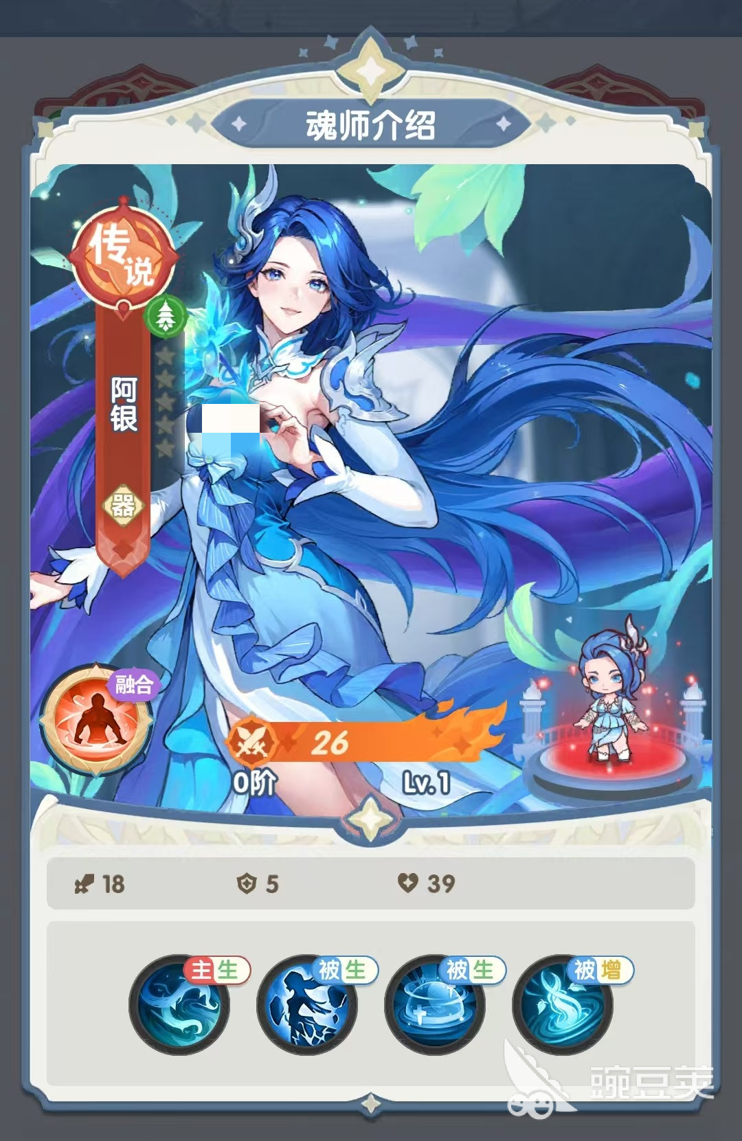 第3个被动蓝银皇真身,在第3回合释放,回合结束时全体都能恢复生命值,提升魂环年份后额外驱散队友身上的减益效果,提升治疗量。所以阿银的定位非常清晰,就是目前的核心辅助。无论是自身的主动还是被动技能所带来的各种辅助效果,都能使整个团队的战力直接翻倍。最适合搭配的当然是唐昊,这二人配合起来是目前的顶级搭配。唐昊是最顶级的强攻系魂师,主动技能可对随机多个目标打出高额伤害,还会牺牲血量换取输出,所以配合阿银的治疗非常重要。