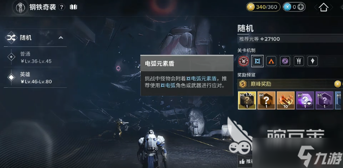 建议等到28,000左右然后进去,否则的话很容易就会被小怪虐,跟普通的模式比较,这一个副本确实会有一些难度,但是奖励还是比较丰富的。在打开挑战页面之后,马上就可以找到钢铁奇袭,在右边关卡机制里面会写得比较清楚。在这个模式里面就会有三种元素护盾,所以在组队的时候就需要及时的补充三种元素的角色,例如可以选择三烈日、二电弧、一虚空。核心的角色那自然是必带狼,还有格温。狼的输出是比较出色的,格温可以补充伤害也能控制战场。