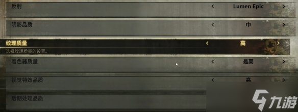 纹理质量:决定物体表面的清晰度。对性能影响相对较小,建议优先选择“高”。