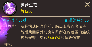 这个技能很有意思,首先会凌空虚步前行一段在路径上画出数个魔法阵,然后会跳回原来的位置释放魔法阵中的能量,能量会以能量球的形式攻击范围内的敌人,造成客观的伤害。