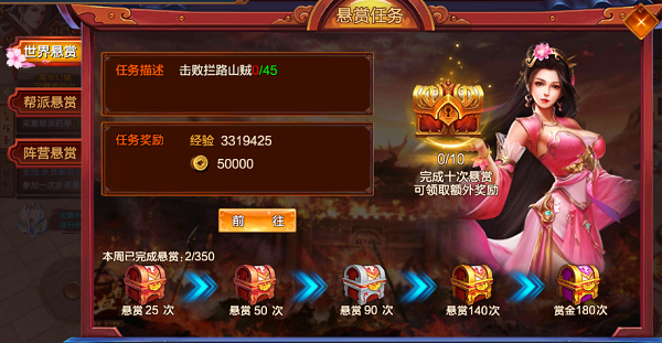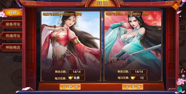 1. 玩家达到一定等级会出现无法继续主线任务的情况,这个不要着急,说明你只是等级不够,获得经验的方法有很多,比如傻傻小怪什么的,但是这不是获得大量经验的方法,获得大量经验的方法有:拜神和悬赏。当然这只是前期,后续还有很多功能可以获得大量经验不如说军校场等地方。