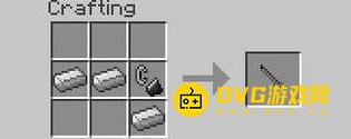 2、枪托合成好了之后,玩家们需要去合成枪管。枪管需要使用到铁块和打火石,所以我玩家们需要先将打火石做出来,打火石直接用铁块和燧石就能做出来。小伙伴们需要将铁块放置在4和5合成栏,打火石放置在6合成栏,这样就可以得到枪管。