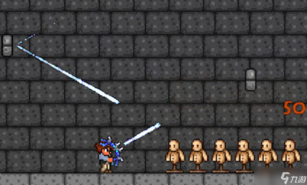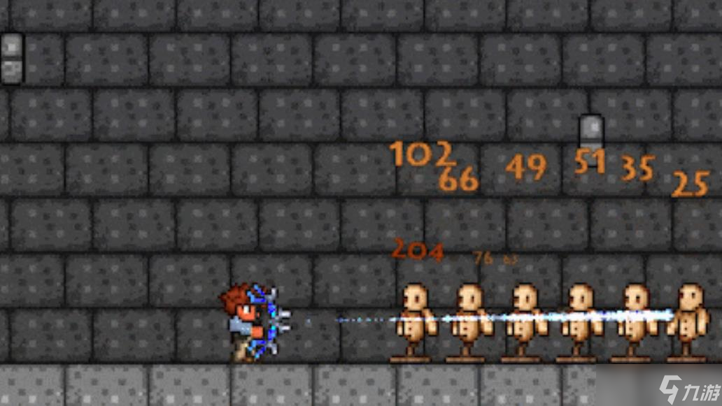 脉冲弓是具备有三点较弱击退力的武器,可以造成八十点的远程伤害。可以自动开火,并高速发射出不受到重力影响的蓝色光矢,在消散前能大约飞行四百八十格左右的距离,差不多就是三点五秒钟。光矢可以穿透任意敌怪并进行反弹,总共能反弹五次,在第六次的时候会消失。该弓箭能够用任意类型的箭矢作为本身的弹药使用,但是会将其全部都转化为独特的光矢,所以并不需要为其准备特别稀有且昂贵的箭矢,使用最为便宜且伤害低的木箭就行。
