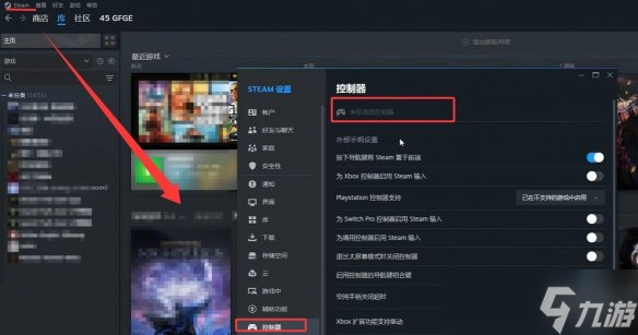 在设置窗口中,选择左侧的“控制器”选项卡。