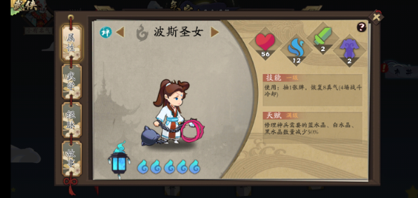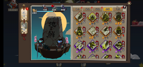 我最最最喜欢这个游戏的一点,就是它的侠客了!每次游戏闯关,可以选3个侠客搭配。首先,武侠展示界面的侠客,是泥人的风格,真的很萌很有传统文化韵味,如果拿这些泥人来做周边,真的有想收集一套的冲动(如果开发组看到了请送一个给我吧)!除了武侠展示界面,其他地方展示的侠客侠都是水彩手绘国风,也非常独特~