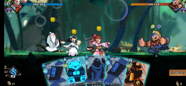 如游戏介绍的一样,游戏的闯关过图机制就是轻度典的Roguelike,每一次进入江湖的地图都是随机的,每闯过一关,装备游戏币卡牌什么的也都清零,有一次我打到了第一个地图“少林寺”的第四层了,眼看就要通了这一层了,结果死了又要重来,总的真的是很Roguelike啦。