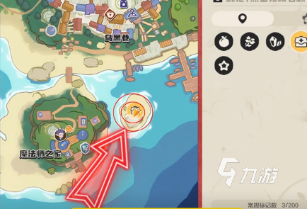 第四个宝箱出现在魔法师之家右侧的小岛上,需要使用小海豹并施放水系技能方可开启。请提前准备好该精灵以完成开启操作。