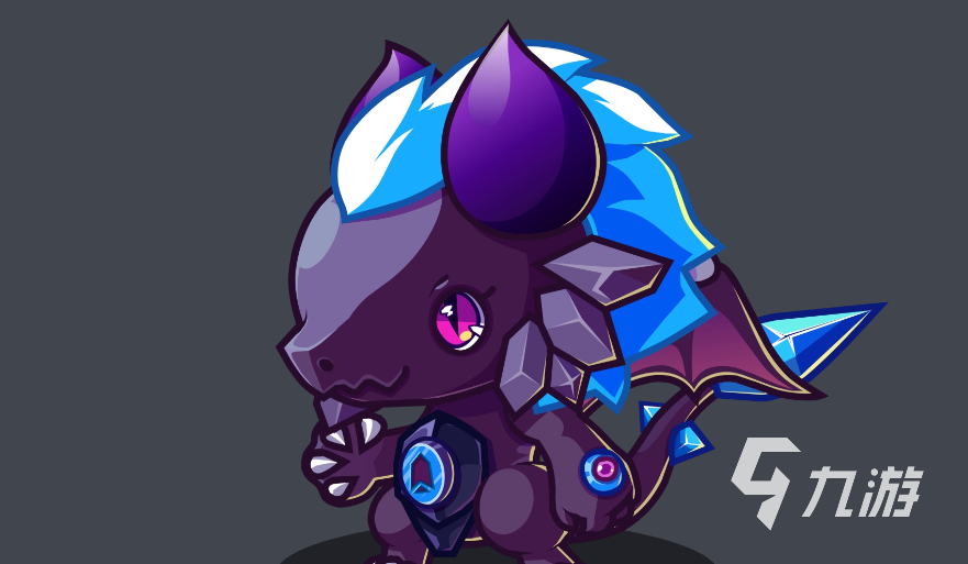 从外形上看,暗夜幼龙具有鲜明的视觉特征:紫罗兰色的皮肤搭配天空蓝的发色,整体造型既独特又富有辨识度。虽然动作略显笨拙,但这种反差感反而增强了它的亲和力与个性魅力。它常在丛林地带活跃奔跑,灵活穿梭于树木之间,仿佛一道跃动的光影,为游戏世界增添了不少生机。