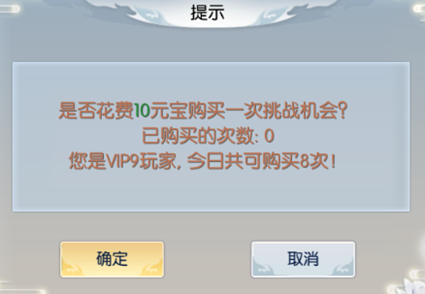 购买挑战次数:VIP0玩家每日有5次购买次数,vip1以上最高可购买1次,VIP5以上可购买2次,VIP8以上可购买3次;