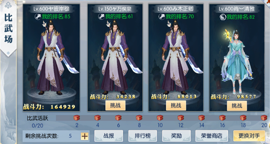 挑战对手:挑战成功会获得奖励,且排名上升,挑战失败,排名不会发生变化;