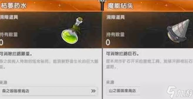 在【森之国·四】附近的【归木村】,找到国度商人【赫密斯】,在其4级商店中可兑换森之国特产开图道具【枯萎药水】;在【山之国·五】附近的【堡垒镇】,与国度商人【帕鲁】交易,于其4级商店兑换山之国特产开图道具【魔能钻头】;在【泽之国·九】附近的【温泉乡】,通过国度商人【大泽荣一】的4级商店,兑换泽之国特产开图道具【爆破水雷】;