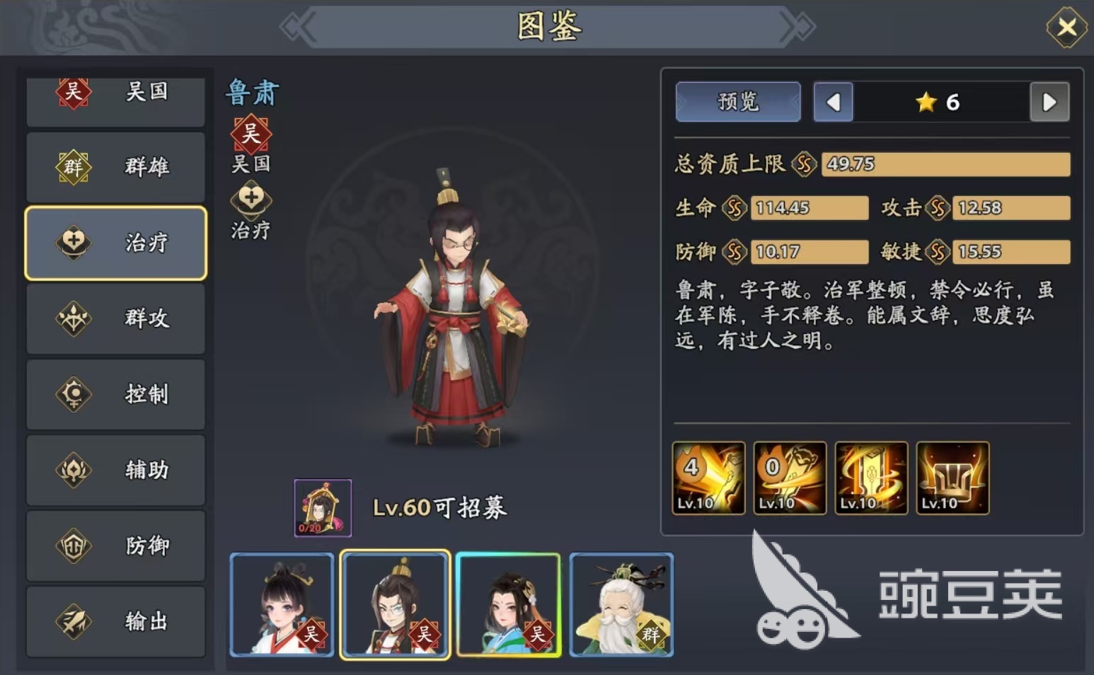 以上这些内容就是小编对于三国志异闻录鲁肃怎么样这个问题所进行的解答,大家看完之后就了解鲁肃的技能特点以及如何进行阵容搭配了。因为获取简单,所以培养过程也较为轻松,可以很容易地达到高星。